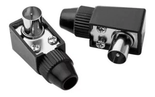 CONECTOR DE TV PREMIUM MACHO PIN GRUESO PARA CABLE COAXIL CON SUJECION A ROSCA - ACODADO - COLOR NEGRO